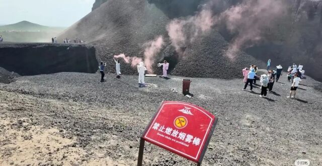 有网友指出,景区内随处可见被丢弃的烟雾棒,空气中弥漫浓烈火药味,管理存在疏漏。乌兰哈达火山群因独特的地质景观和“宇航服打卡”现象迅速走红,成为热门旅游地。