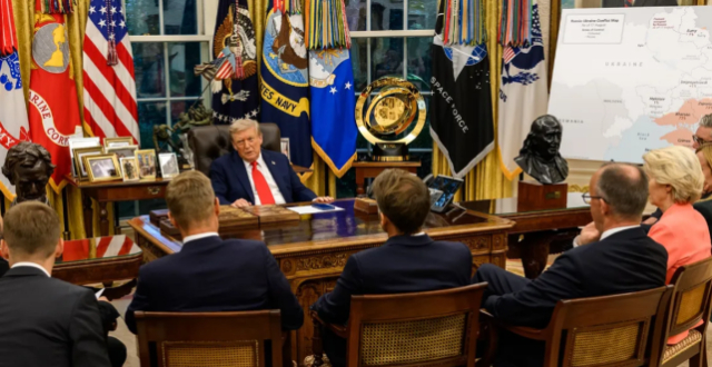 据中国新闻网,本周,白宫发布了美国总统特朗普多边会晤的现场照片。眼尖的足球迷发现,在最显眼的位置出现了一个令人意外的奖杯。切尔西队今年7月击败巴黎圣日耳曼后获得的世俱杯奖杯,正陈列于白宫椭圆形办公室内。